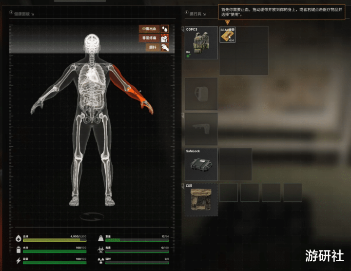 灰区拟真向的健康与器官系统,高度考验玩家的应变能力。和现实中一致,大脑、心脏、肺脏等重要器官的损毁,无论是受子弹直接命中,还是被空腔效应影响,都会导致角色当场死亡或昏迷。受损没那么严重的器官,也会给角色带来呼吸困难、咳嗽、呕吐等负面效果。