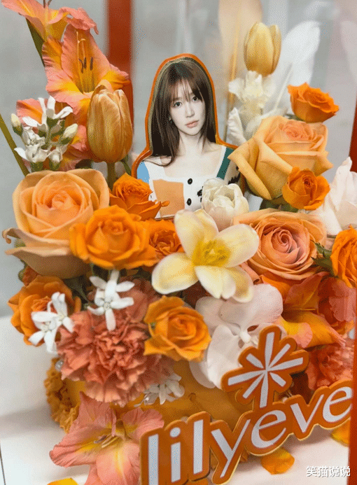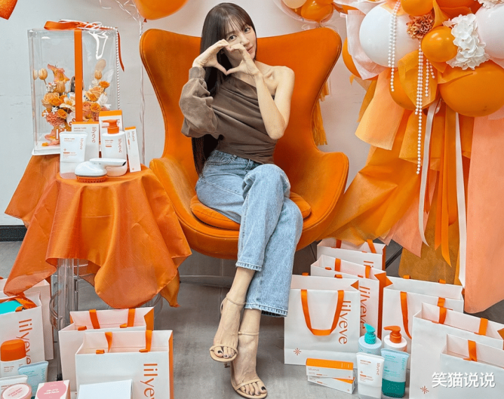 尹恩惠坐在椅子上,周围都是品牌方给她送来的礼物和周边产品以及庆贺的气球和蛋糕等等。她坐在椅子上,对着镜头歪头比心拍照,看起来很开心的样子。