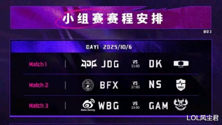 微博、京东、NIP这三队,世界赛开赛前,还有一个亚洲邀请赛要打,目前赛程也已经出炉了,京东、微博、DK、GAM在A组,BFX、NIP、NS、MVKE在B组,单从分组来看,A组是绝对的死亡之组,除GAM之外,另外三队都不弱,前二晋级的情况下,京东、微博、DK,必有一队被淘汰。