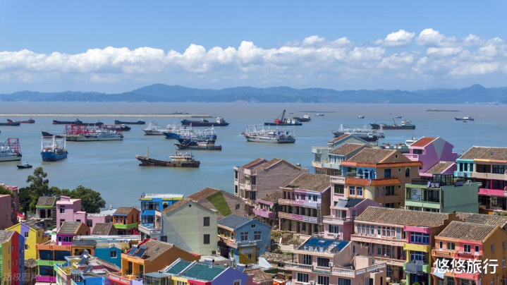 温岭石塘镇,麒麟山看日落绝佳,可俯瞰整个七彩小箬村。滨海绿道沿山脊修建的步行道,一半是山,一半是海。