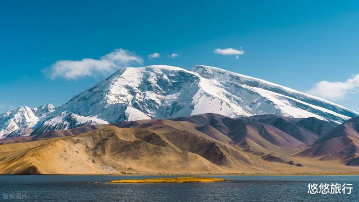 自驾前往塔县,公路两侧雪山高耸入云。白沙湖蔚蓝明净,白沙飘渺。慕士塔格峰巍峨矗立,喀拉库里湖潋滟。黄昏时分,班迪尔蓝湖更显幽蓝。