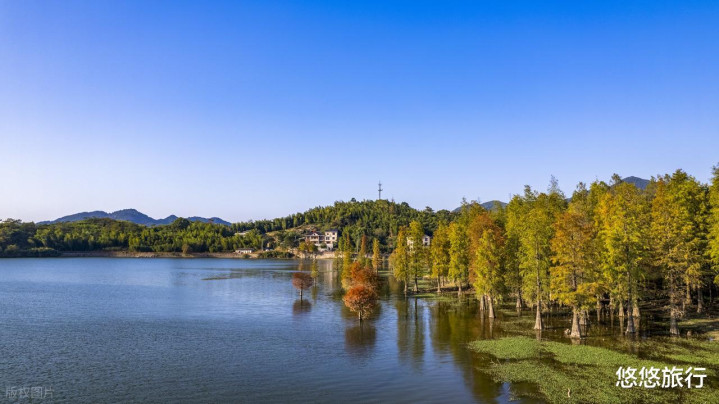 储家滩十里画廊、徽派建筑和碧波湖水交织。深秋时节,方塘乡的红杉林矗立水中,色彩炽烈。桃岭公路蜿蜒盘旋,青龙湾水库湖光山色,沿途还能邂逅静谧的皖南田园古村落。