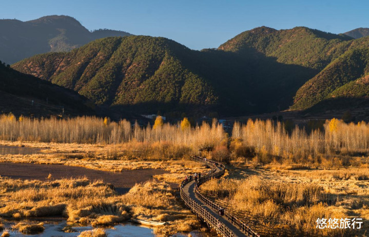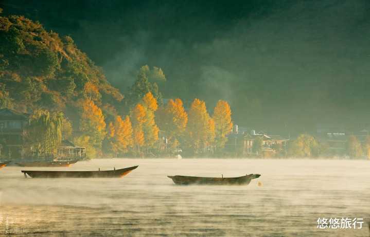 里格半岛是经典的拍照位置,秋冬晨雾缭绕时宛如仙境。草海变成金黄色,走婚桥横跨其中。女神湾日落观景点,湖水湛蓝,夕阳染红整片天空。格姆女神山360°俯瞰泸沽湖,秋色尽收眼底。