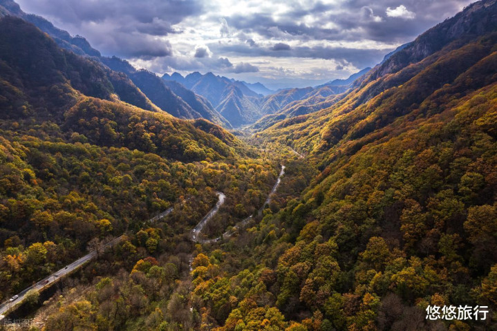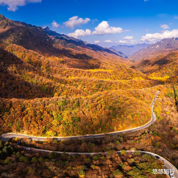 10月下旬-11月上旬,沿途秋景繁盛,彩林遍布,途经终南山寨、牛背梁等景点,是秦岭山区的一道亮丽风景线。
