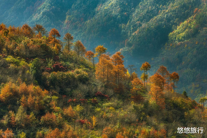 四明山坐落于浙江省东部,山峦在海拔400米至900米之间起伏,11月至12月适合赏秋,枫叶、银杏绚烂,让人目不暇接。