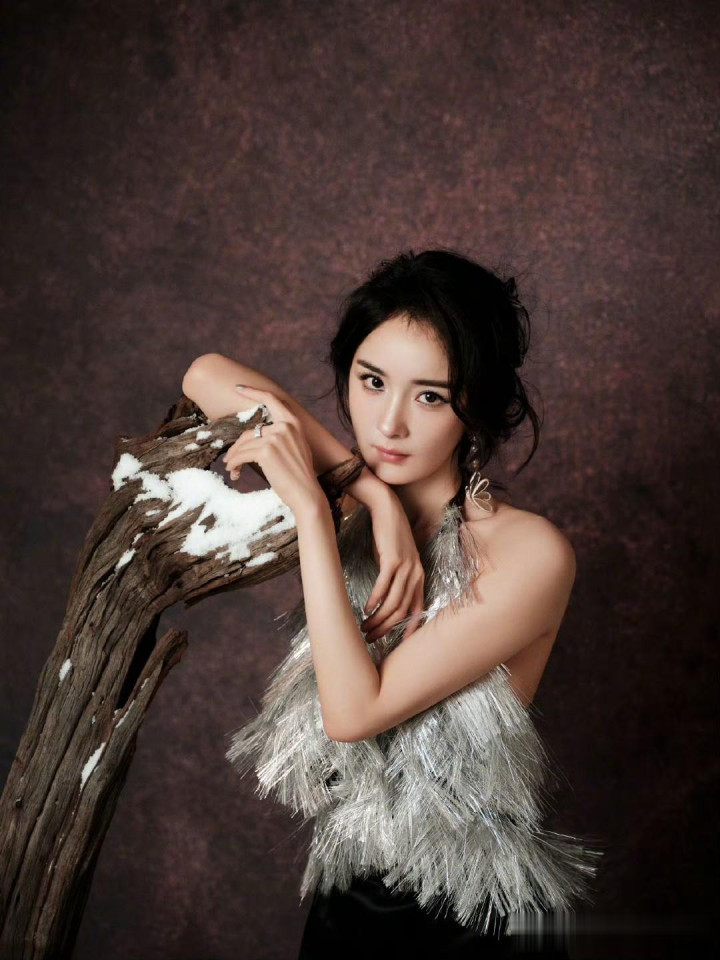 杨幂罗意威女帝装: 黑色羽毛露背裙, 好曼妙优雅的大幂幂