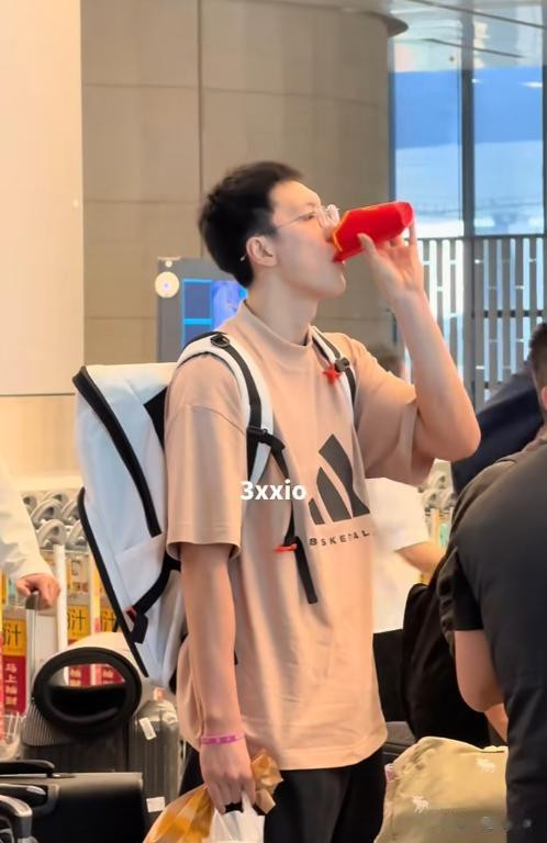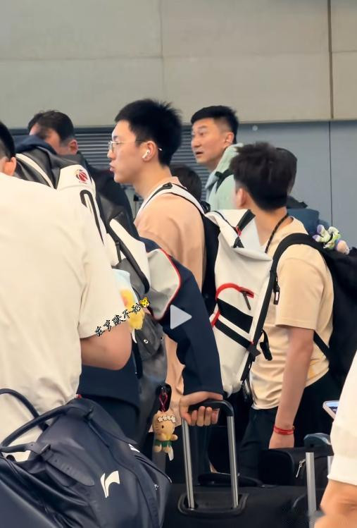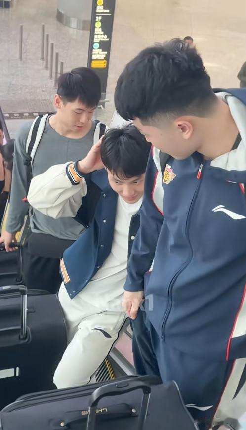 徐杰在飞机上睡了觉,下飞机精神抖擞,心情也大好,和旁边的队友崔永熙、张皓嘉狂聊。