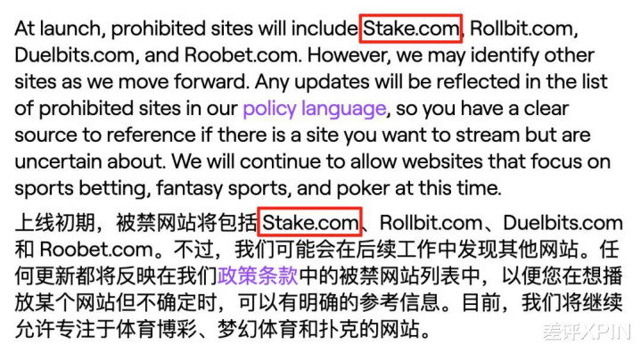 很显然,两者是不可得兼的,一个平台不可能既是博彩天国,又是 Twitch 那种上台面的知名直播平台。