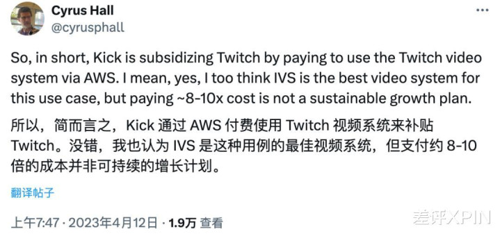 Amazon IVS,换言之,它是亚马逊的大客户。而且 Kick 烧的每一笔钱,最终都会被用来补贴入不敷出的 Twitch。