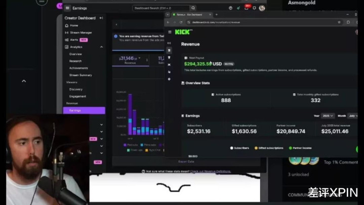 而且前几天他贴了一组数据,那就是他在 twitch 和 Kick 两个直播平台同时开播后,发现了一个特别逆天的情况:他 6 月在老牌直播平台 Twitch 的收入只有 31100 美元,可是在 Kick 这个新直播平台,收入却几乎翻了 10 倍,超过了 294000 美元。。。