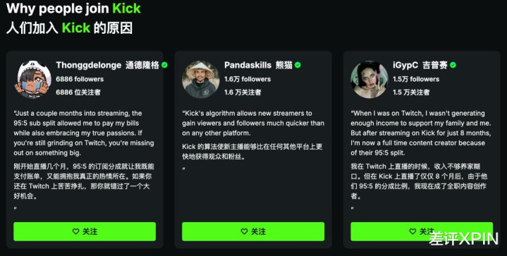 很多主播极尽赞美之词,对他们而言,Kick 已经成了一个养家糊口不可或缺的工具,这是其他直播平台难以给予的。