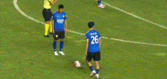 5分钟之后,吴彦澎助攻,崔明安飙远程定位球世界波帮助大连鲲城队扳平比分。