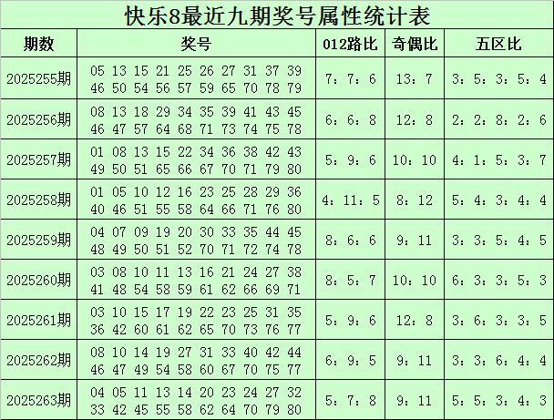 林啸快乐8九期奖号属性分析