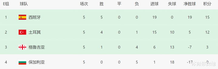 在第5轮比赛中,西班牙队和土耳其队,分别击败格鲁吉亚队和保加利亚队,因此2队的差距依然不变。截至目前,土耳其队落后西班牙队3分,理论上还有逆袭对手的希望。