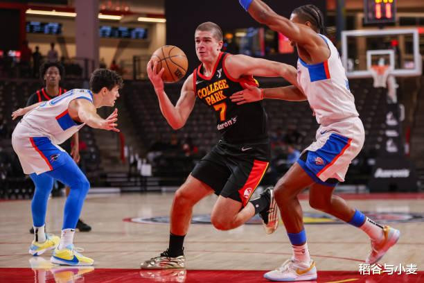 久里西奇出生于2004年2月,现年21岁,身高203cm,体重95kg,是2024年NBA选秀大会中老鹰在次轮第43顺位选中的侧翼球员。上赛季在伤愈复出后,久里西奇加盟了老鹰在NBA发展联盟的下属球队大学公园天鹰,他在NBA发展联盟赛场总共出场33次,其中3次作为先发,场均出场时间达到了22.6分钟,场均数据为10.2分2.9篮板3.4助攻0.8抢断0.4盖帽,还有3次失误和2次犯规,投篮命中率38%,三分命中率18%,罚球命中率84.1%。久里西奇的进攻效率确实是不太理想,他在三分线外的表现更是惨不忍睹,但是他其实也是展现出了自己在进攻端的一些才能的,他具备不错的处理球能力和支配球能力,他也有着很高的球商和比赛阅读能力,这些特质在同位置球员中都是非常罕见的。