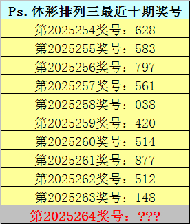 钱哥体彩排列三第2025264期推荐:类型——组六