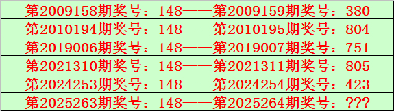 排列三第2025263期开出奖号148,该号码直选类型历史上出现了6次,前5次开出之后期下期奖号为:380、804、751、805、423,见下表: