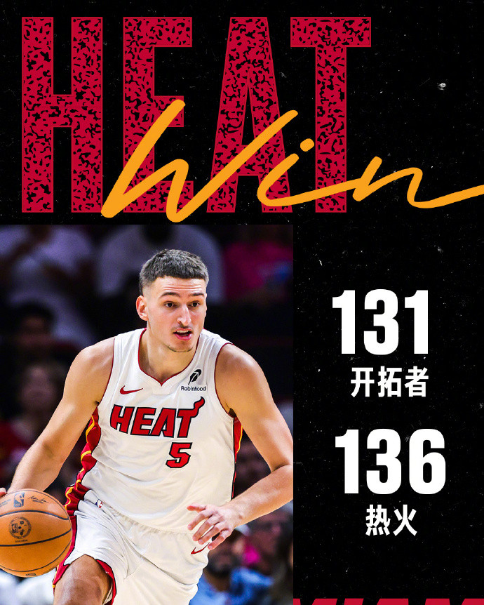 热火今天在主场以136-131战胜开拓者,取得两连胜,战绩来到6胜4负,排在东部第七。而开拓者战绩变成5胜4负,也排在西部第七。全场比赛都十分胶着,两队在进攻端也都非常出色,得分都超过130分,最终还是热火更胜一筹,险胜开拓者。